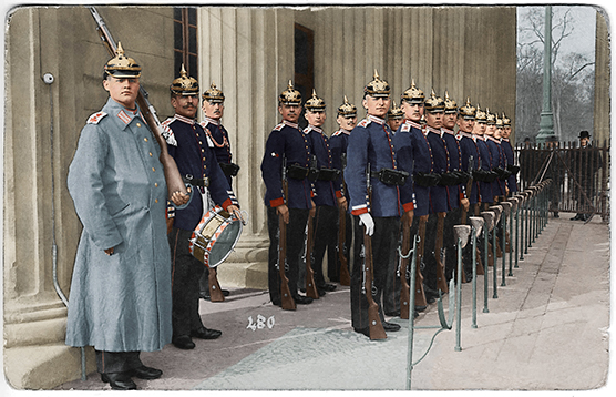 Garde Grenadier Regiment Nr.1 prennent la pose. Nous sommes le matin, au debut de l'année. Les arbres du Tiergarten