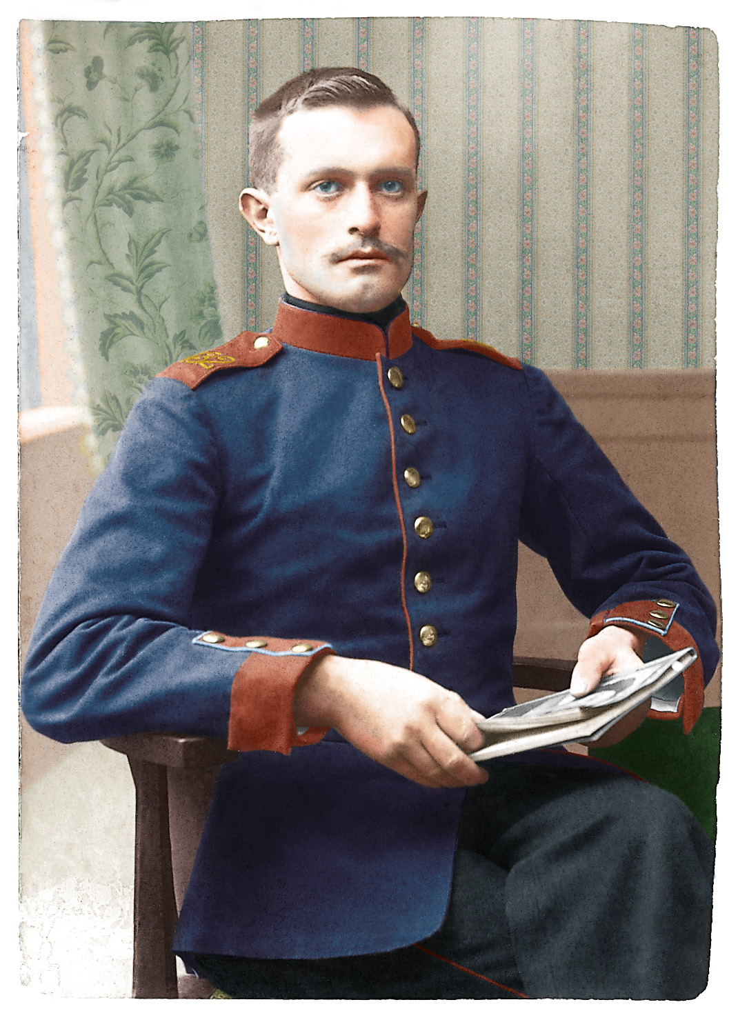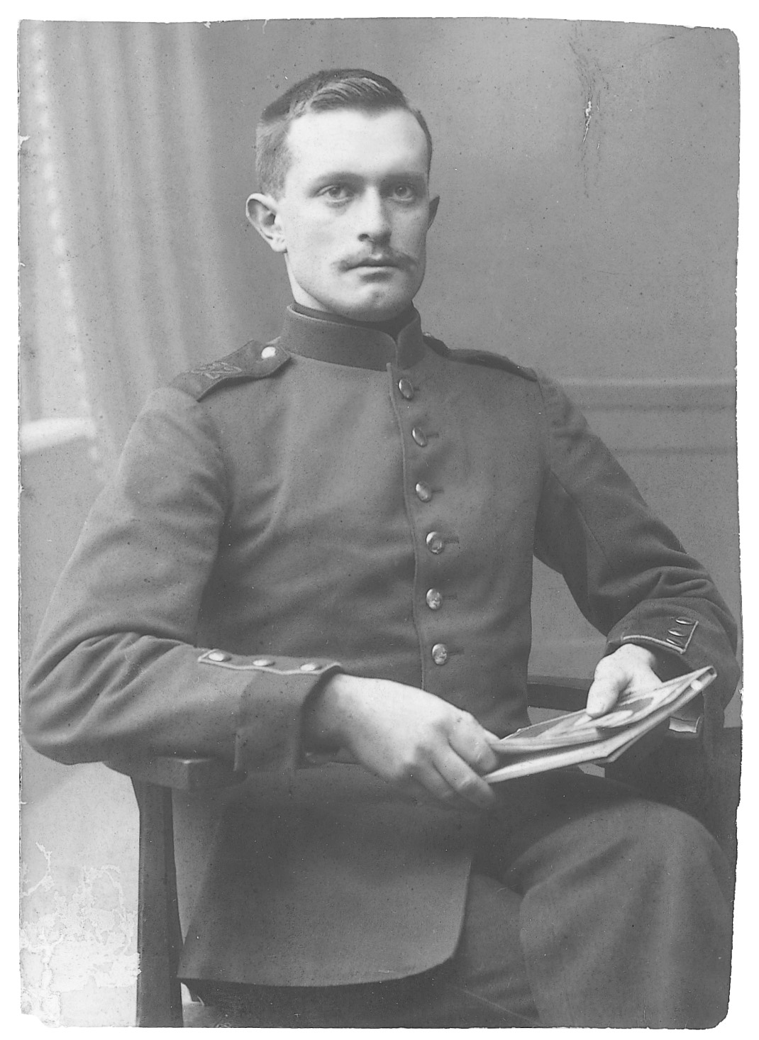 beim Fotograf. Auf dem Bild trägt er noch den alten bunten Rock M1895 (Sam. L. Heinrich).