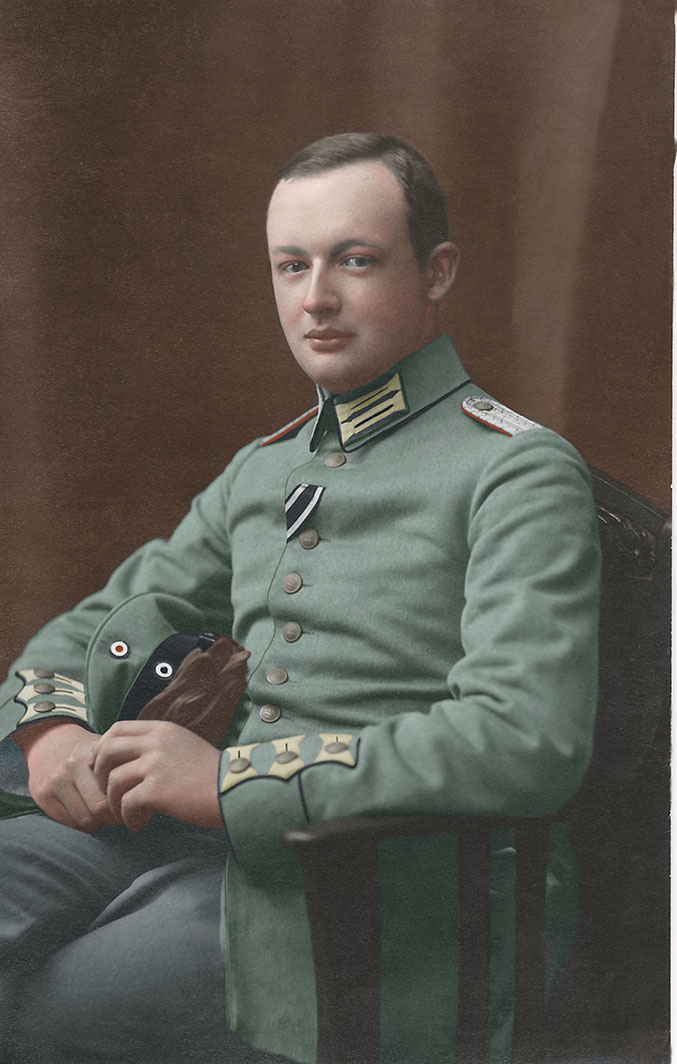 Allemagne, printemps 1915. Chez le photographe. Le Leutnant Hans-Albrecht von Dombois. Il est officier au Garde