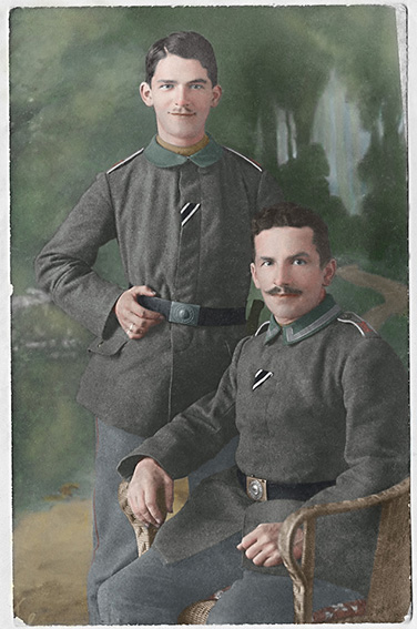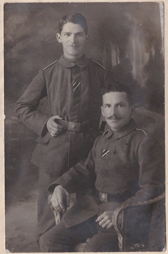 Allemagne Dantzig, début 1918. Chez le photographe. Deux frères décorés de la Croix de Fer de 2e classe.