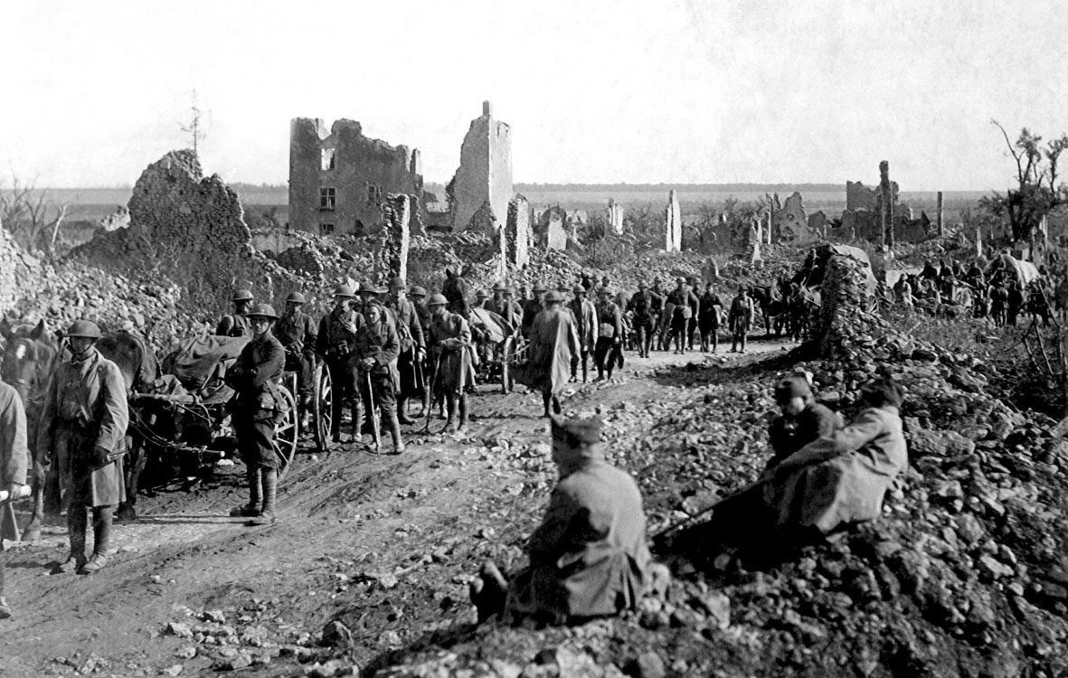 Französische Soldaten vom 162 IR kommen als Verstärkungstruppe und besetzen wieder nach einem Nachtangriff