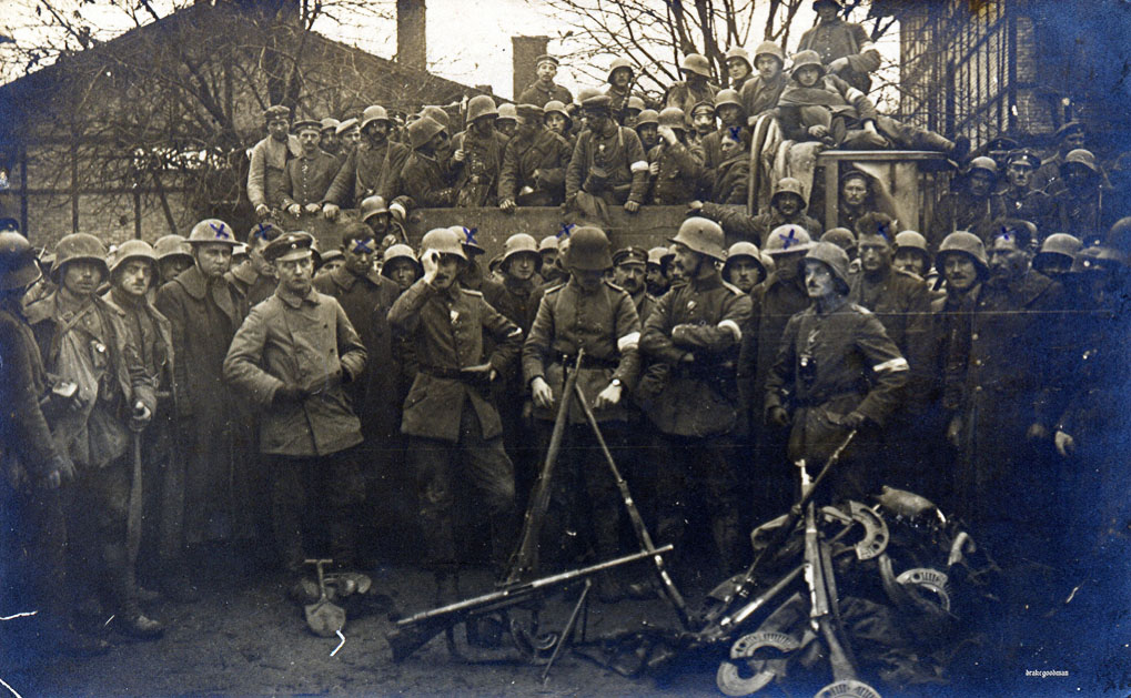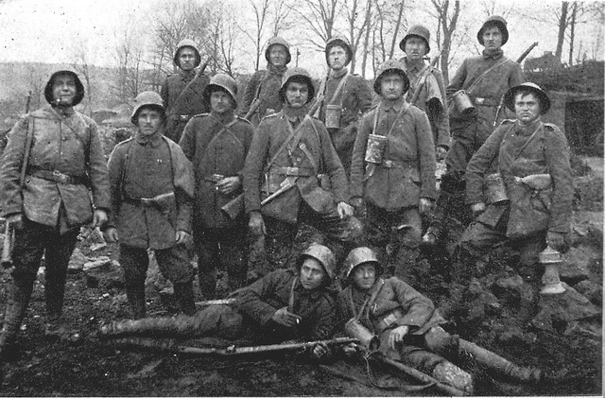 Soldaten des RIR 259 nach dem Einsatz auf Seicheprey lassen sich fotografieren.