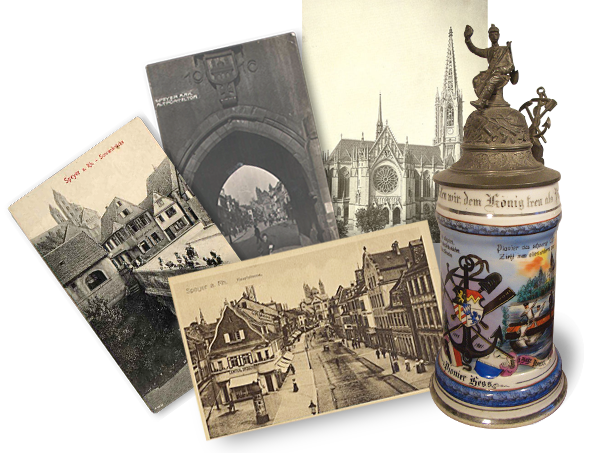 Drei Poskarten der Stadt Speyer mit Ansichten auf dem Dom, dem Rhein und auf dem "Altpörtel"