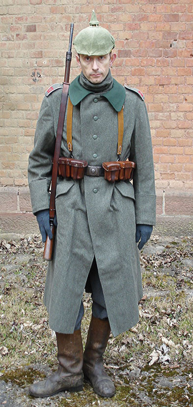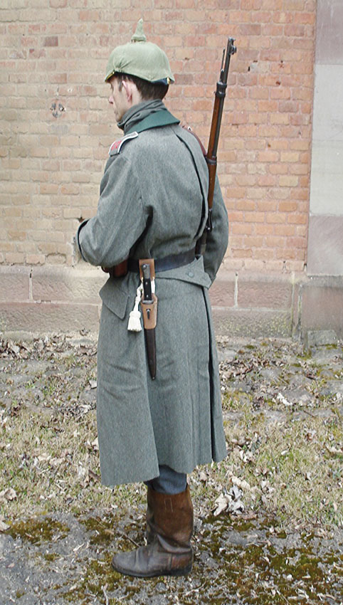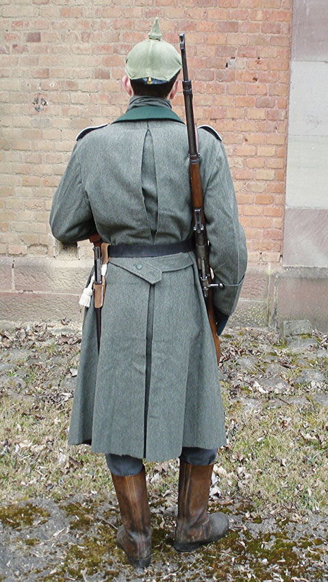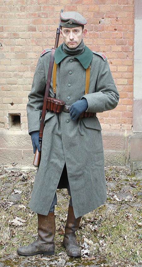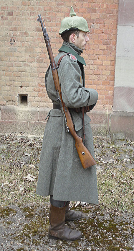Le manteau feldgrau modèle 1915, un passe-montagne et des gants.