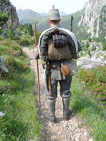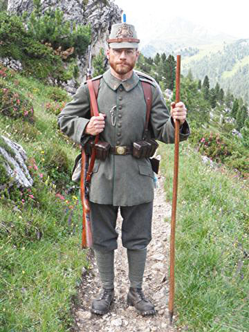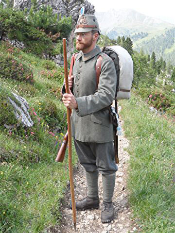 Anstelle der für die Infanterie üblichen Marschstiefel wurde der Unteroffizier für seinen Einsatz im Hochgebirge