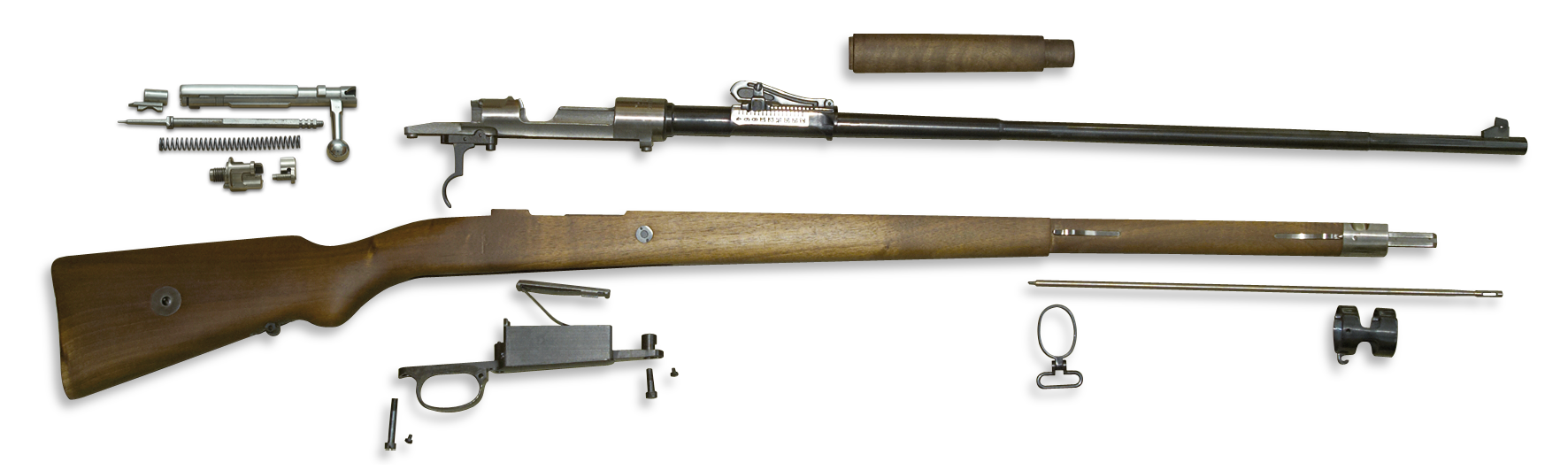 Unten: ein Gewehr 98 mit eingebauter Basis für ein Zielfernrohr.