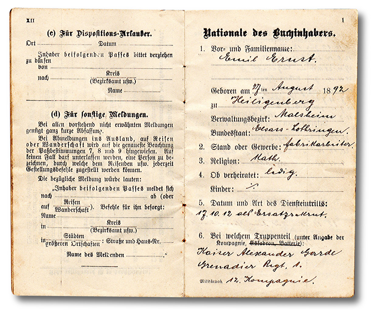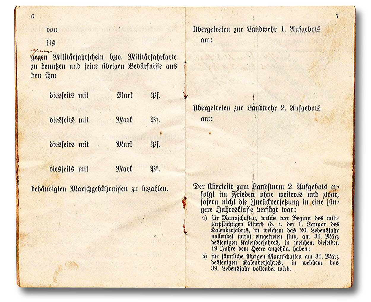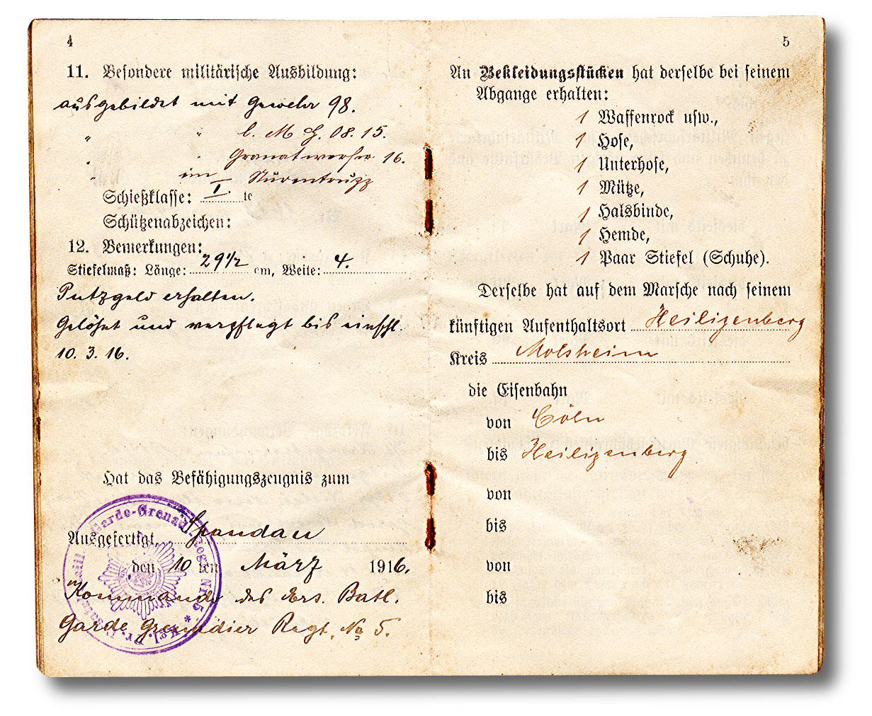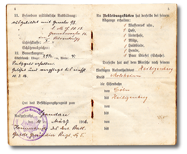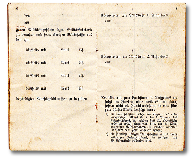 Der Militärpaß bliebt im Regiment solange der Soldat in der Armee war.