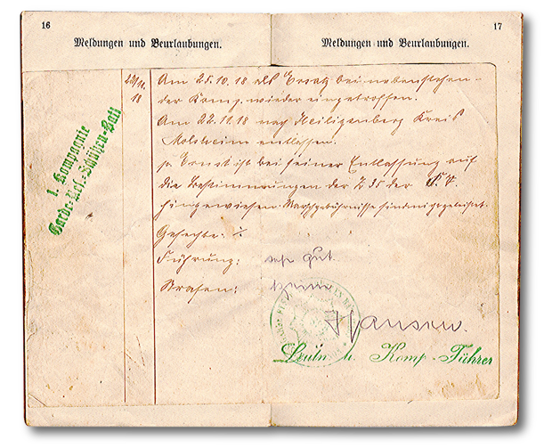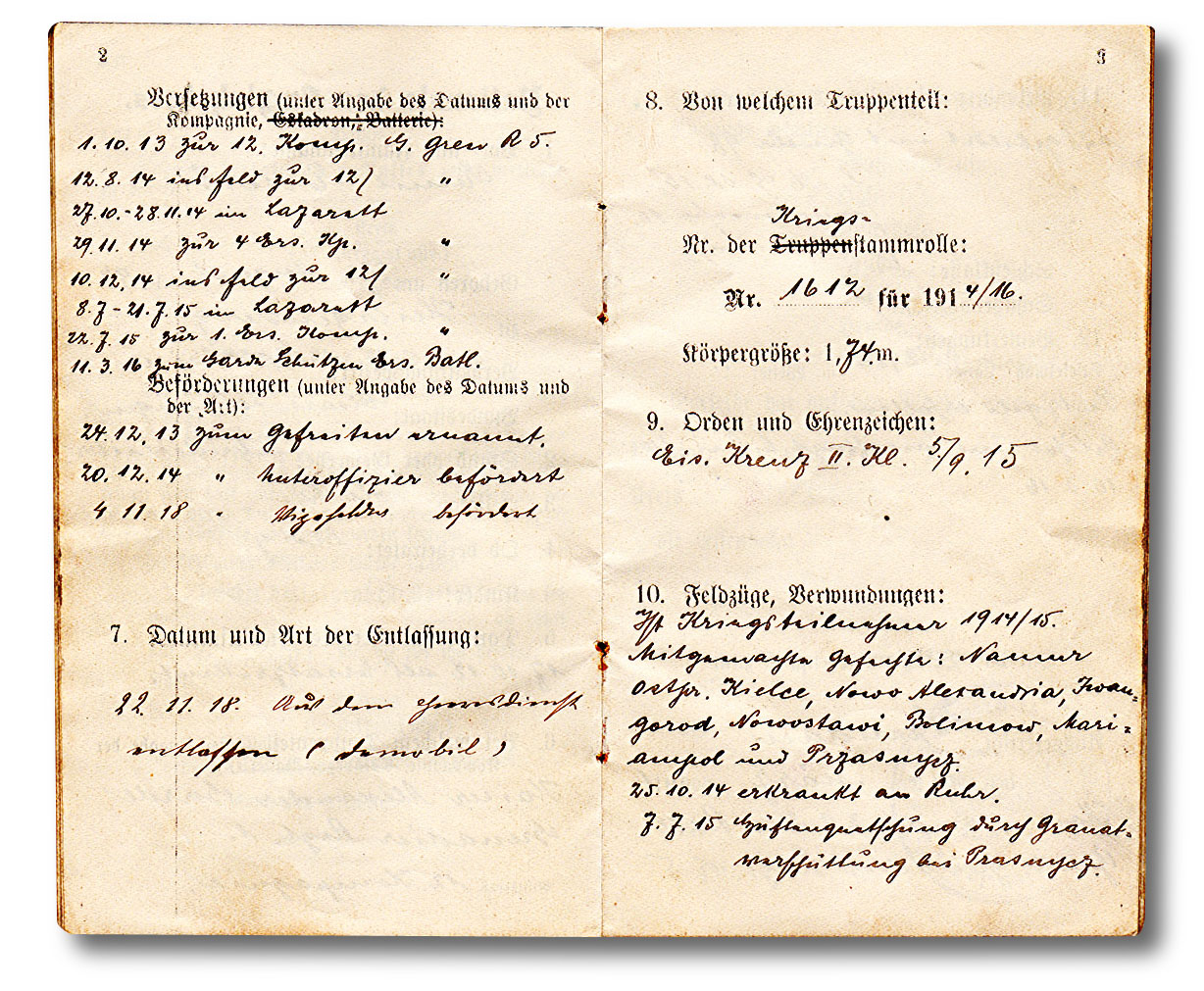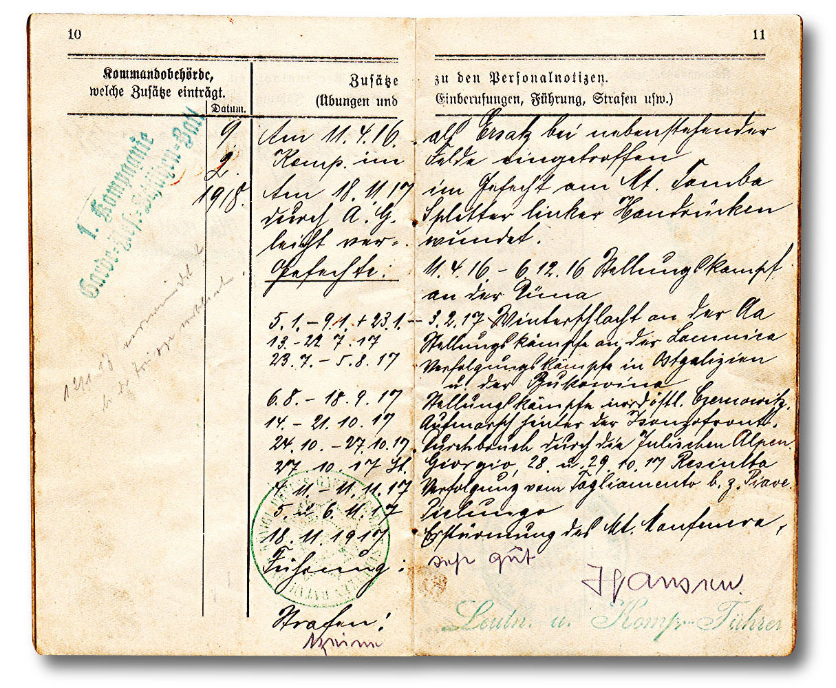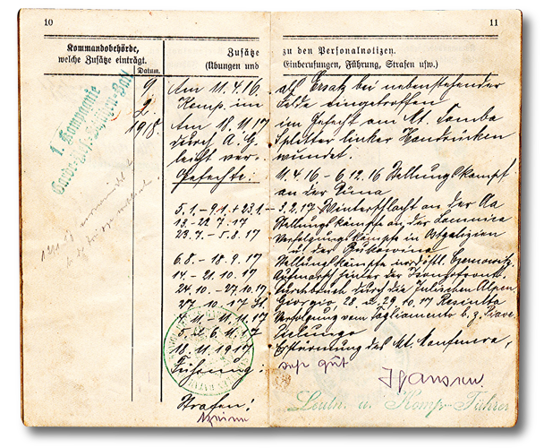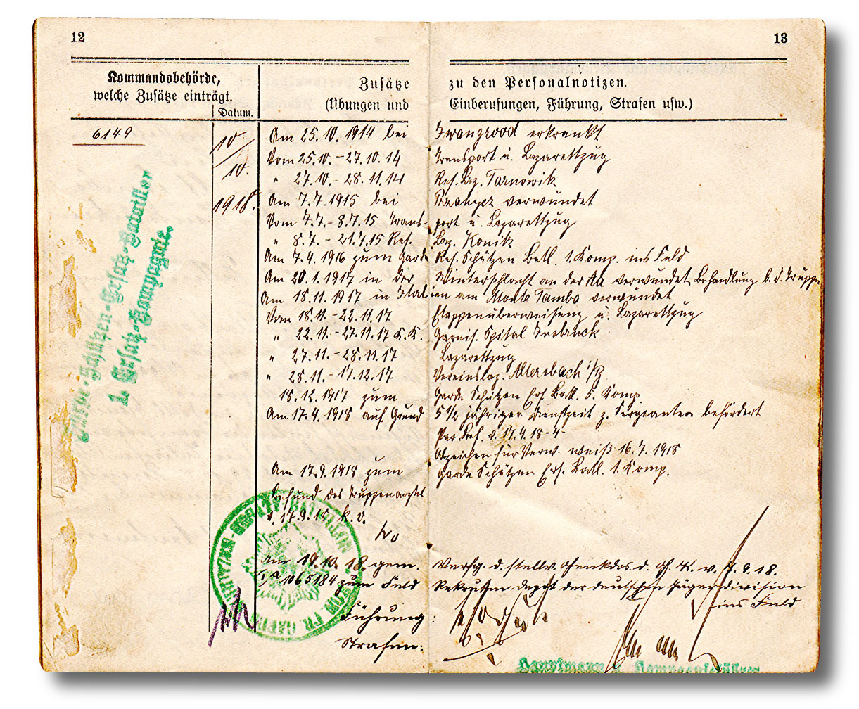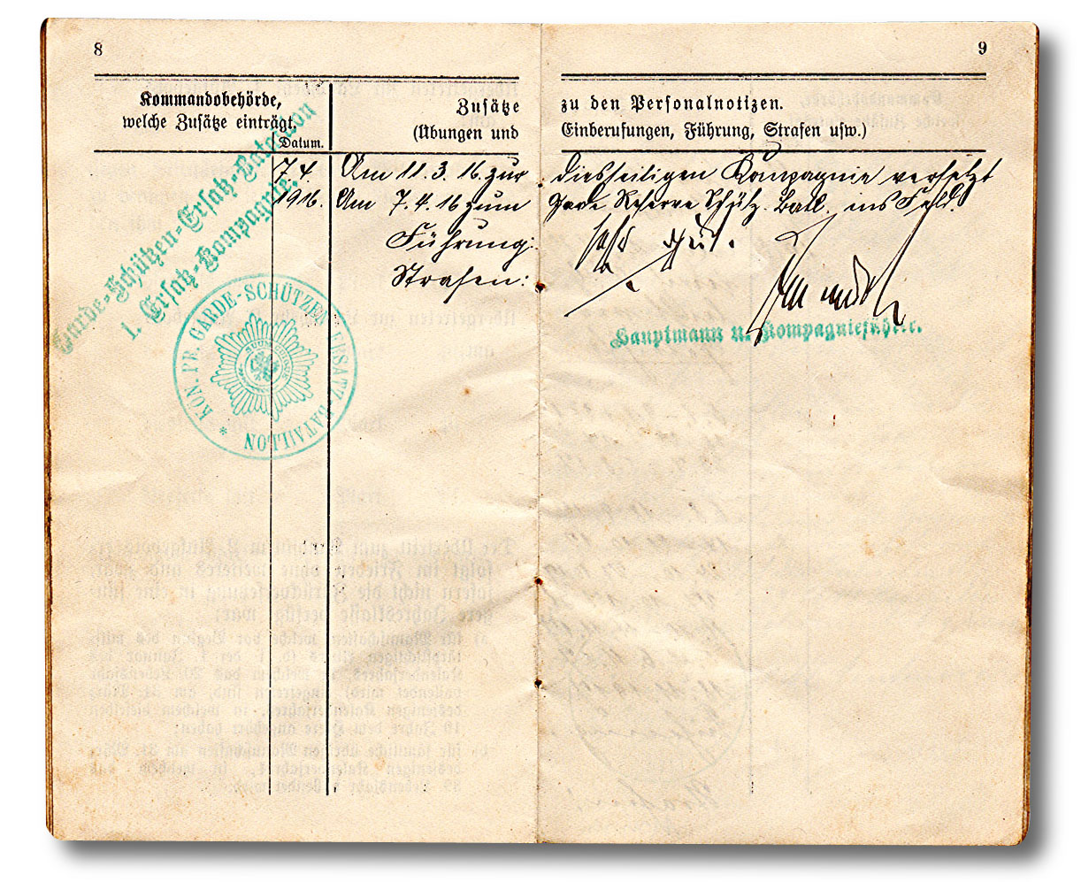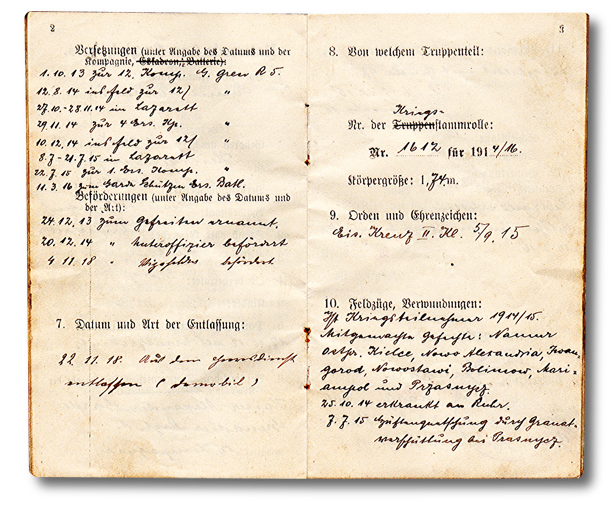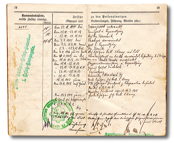 Aber auch Datum des Diensteintritts, Truppenteil, militärische Ausbildung, Beförderungen und Orden. Dann auch die Wechselungen von Einheiten.
