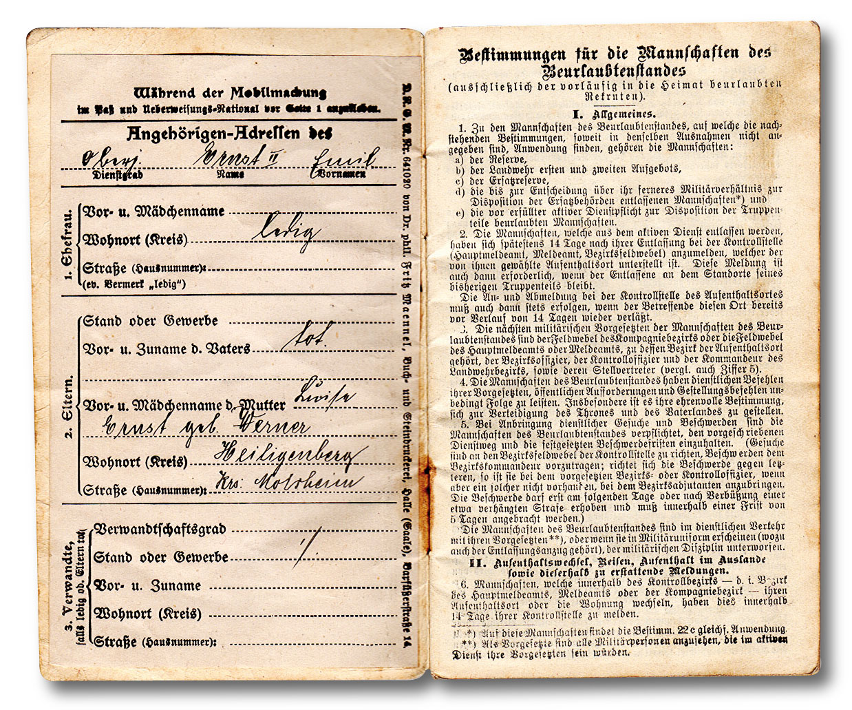 qu'à son retour à la vie civile en échange de son Soldbuch.
