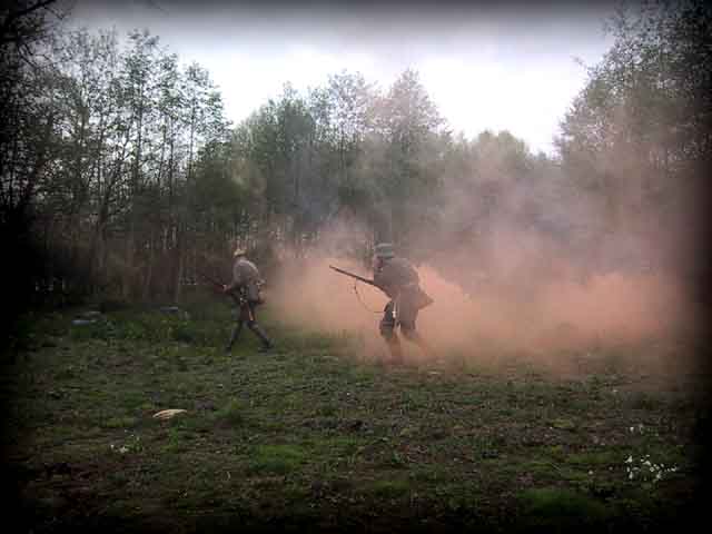 Hierbei wechselten sich Angriff, Rückzug und Gegenangriff ab. Mit Rauchpatronen wurde sogar Gaseinsatz simuliert. Die Gefechtsdarstellung zeigte keinen Sieger außer dem Tot, der auf beiden Seiten reichlich Ernte hielt. Abschließend trafen sich die Kontrahenten zwischen den Fronten und reichten sich die Hände zur Freundschaft. Beim gemeinsamen Essen fanden wie immer interessante Gespräche unter den Teilnehmern statt.